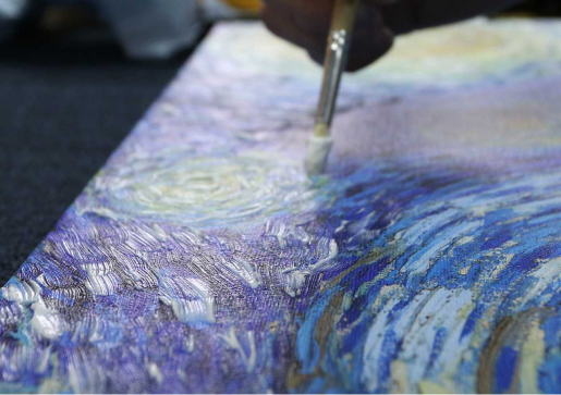 Працюючи з полотном застосовується на фінішному етапі, цей спеціальний склад дозволяє надати додатковий обсяг картині. Обробка фактурним гелем може бути застосована як до картин, так і фотографій, особливо рекомендують вдаватися до даної техніки у разі створення репродукцій, адже гель надасть репродукції об'єму, створить ілюзію художніх мазків.