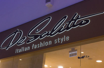 Виготовлення з листового алюмінієвого композиту в колір або з накаткою плівки oracal. Інкрустація короба об'ємними фрезерованими літерами з акрилу. Підсвічування світлодіодними кластерами.